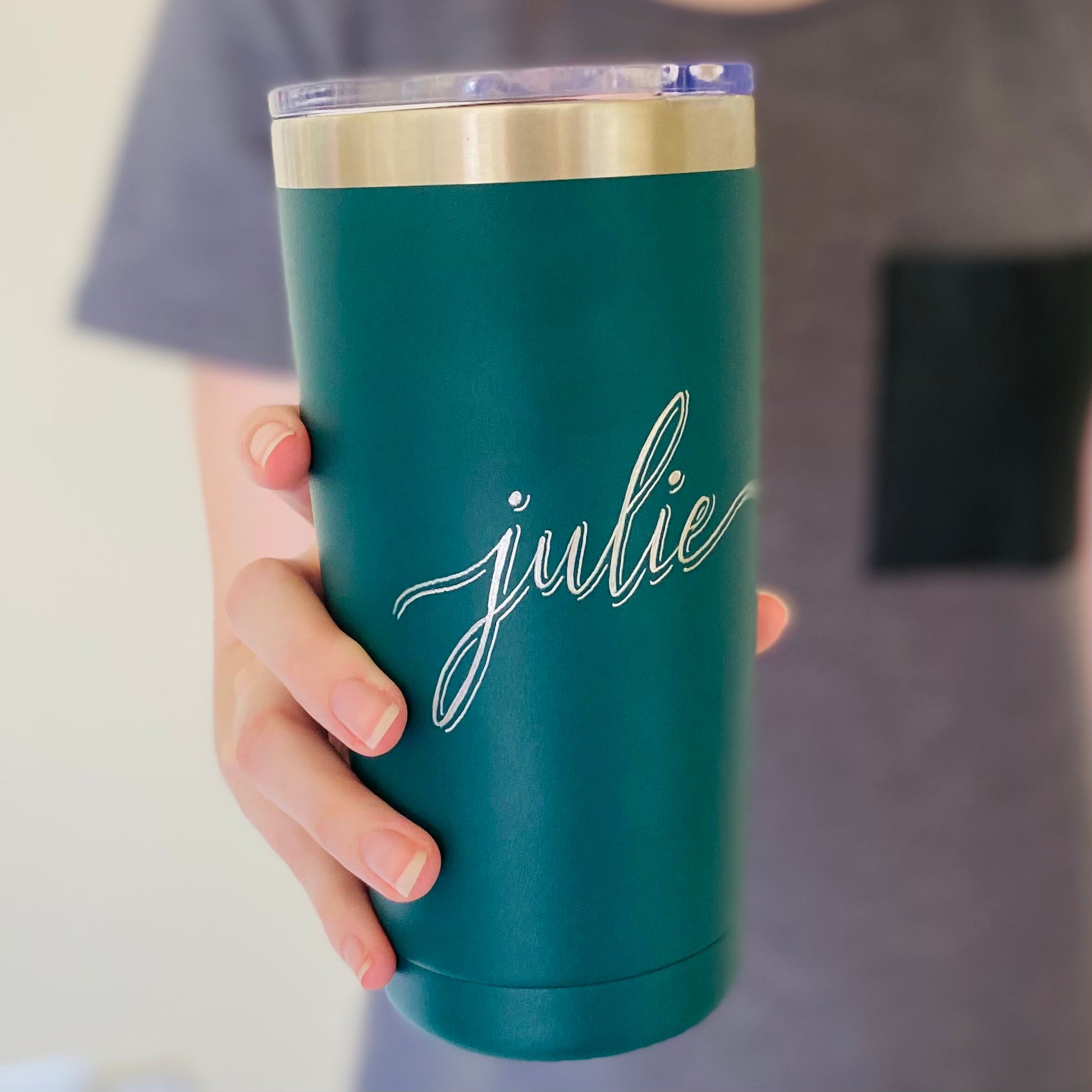 Upgrade the classic stainless steel tumbler with your name or floral design with a this personalized hand engraved tumbler! Reward yourself with a design that is permanently etched into tumbler, ensuring that it will stand up to all kinds of wear and tear. No more worrying what may happen if you accidently throw it into the dishwasher compared to vinyl sticker customizations. This option is going to last you a lifetime, and you'll have a completely unique design and tumbler that's yours and yours alone!