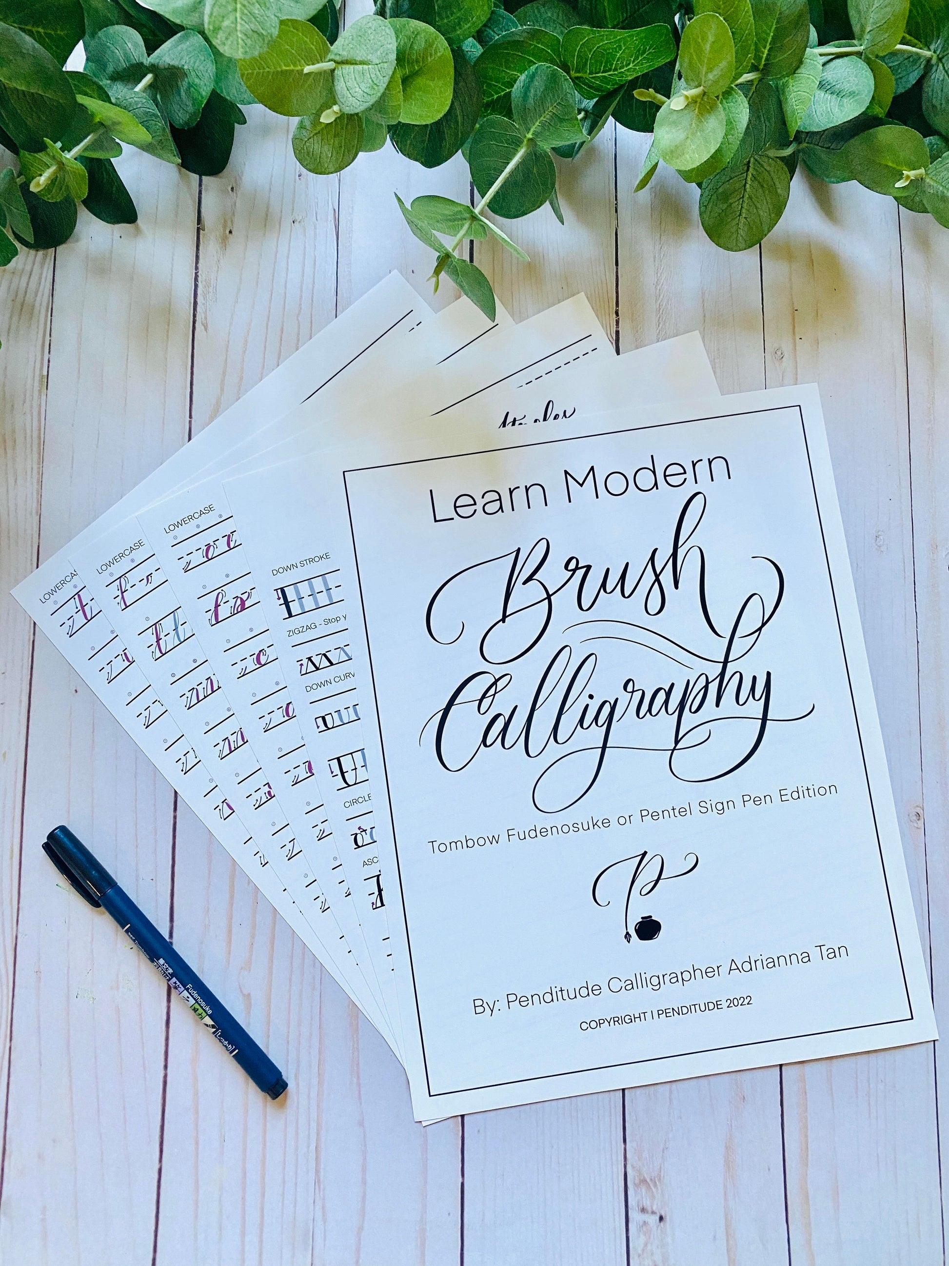 This kit uses the Tombow Fudenosuke Hard Tip brush pen because it's smaller nylon tip is incredibly durable, easier to control, and lasts longer than traditional fibrous brush pens. While there are many brush pen varieties the Tombow Fudenosuke is the perfect beginner brush pen that lets you focus on learning the form of calligraphy without having to also learn how to use a new tool.